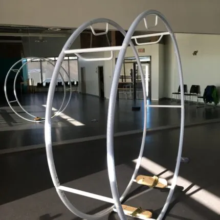 German gymnastics wheel used in circus in various shows with one or multiple performers, artists even use German Wheel as aerial equipment or use it as part of their performance during juggling and acrobatic acts. German wheel aren’t cheap, this is serious equipment and it takes good craftsmanship to make really good German Wheel.