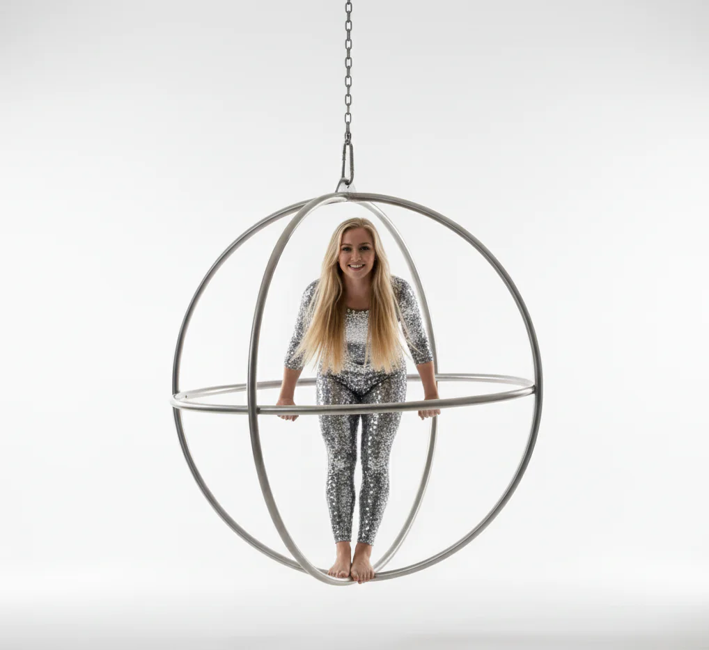 Would you like to performing on a custom made equipment that has been engineered to look like a sphere within a sphere? With our sphere you can create extraordinary aerial performance showcasing elegant balances, and impressive feats of strength. This beautiful aerial sphere allow aerialists to appear in effortless flight to perfectly execute a range of different tricks and positions.