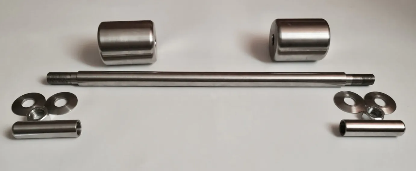 Static or swinging trapeze bar and interchangeable parts all made from stainless steel.