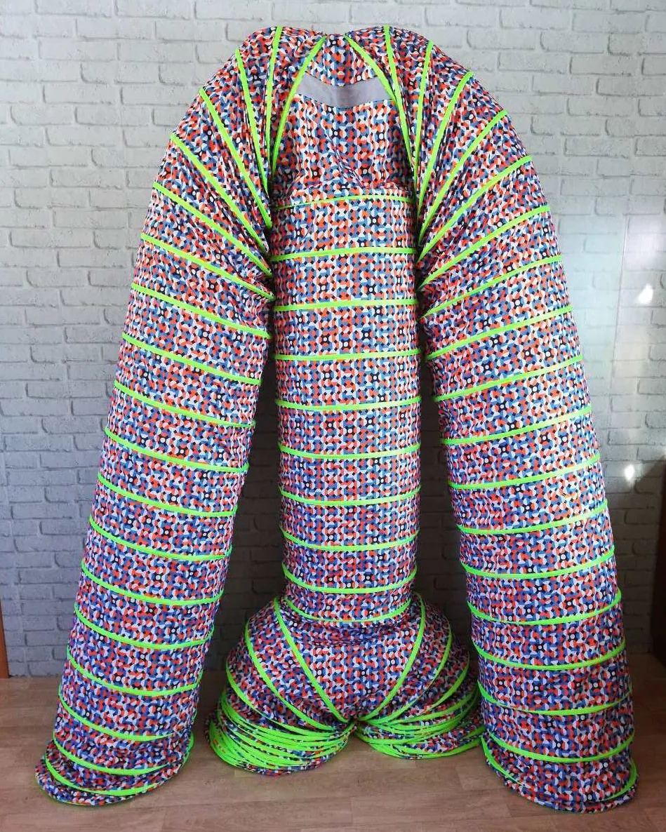 Price 899 USD Shipping 95 USD Mono Slinky costume (Number 3): ~27 rings, visually similar to 40 rings, weight 4kg, synthetic material, length 3.3m You can choose any colour. You can use it separately or as attachment to bigger tube. Production time: 3-5 days plus delivery Shipping costs (delivery 150USD)