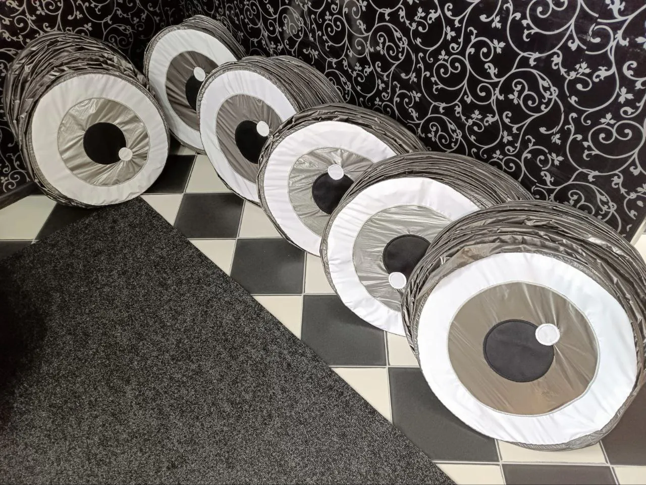 Price 999USD plus shipping Shipping is about 360USD to North America and Japan, EU 320USD, Australia and New Zealand about 490USD Slinky costume Full size (Version 2) : 90 Metal rings, costume ribs is strengthened by wear-resistant cloth. Free bag included! Costume is very durable. Slinky have three separate parts, costume is easy and quick to assemble and disassemble. Special bag for transportation is included. Costume size will fit for any height and build Weight : 10kg, Hands and legs length: 2.9m You can choose any colour, we can send you colour examples as well. You request more rings for additional fee, with more rings costume will be heavier. Materials: raincoat cloth, mesh. Please contact us with your colour of choice, you can upload a file and leave your description below. Approximate time for costume to be made is 2 weeks, Approximate delivery fee 160USD