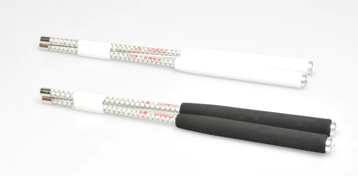 To prevent the weight of the stick from being excessively light, 35 cm thick is used as the thicker than 8 mm Ferrin carbon stick, and the thickness of the hand grip varies depending on the color. Black hand grips are thick, white hand grips are using thinner ones used for 31 cm Ferrin carbon sticks.