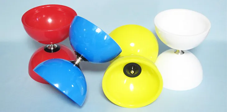 The rigid plastic cup has less friction on the surface and minimizes the deceleration of rotation which occurs when adjusting the inclination of diabolo with a stick. Because it bounces up firmly when falling, it is also suitable for bounce trick.