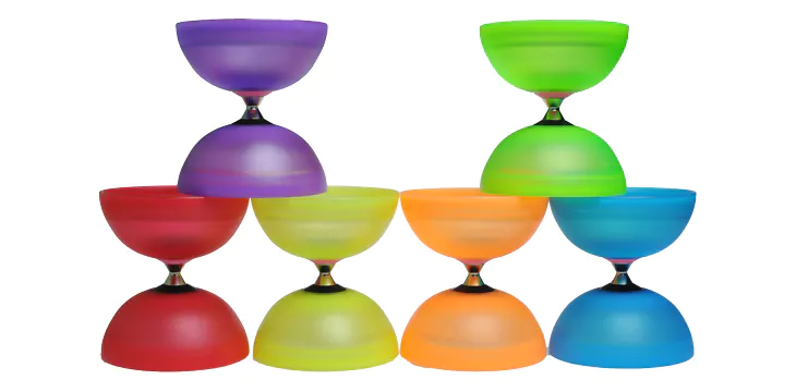 This Diabolo has a built-in one-way clutch bearing (bearing that can only rotate in one direction), and one ball bearing on each side to keep the rotation surprisingly long by reducing friction to the limit.