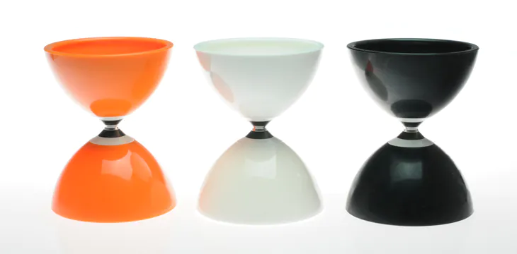 Ray Yabe, produced over many years of planning, and now the first Diarboro "FAILIN" is produced! It is designed to thicken the cup border, to make the center of Diabolo lightly so that centrifugal force is likely to be applied, and rotation is sustained. There is almost no blurring during rotation, and it will not deform at high speed acceleration. The rigid plastic cup has less friction on the surface and minimizes the deceleration of rotation which occurs when adjusting the inclination of diabolo with a stick. Because it bounces up firmly when falling, it is also suitable for bounce trick. It is Diabolo that you can recommend to any level from inexperienced to advanced.