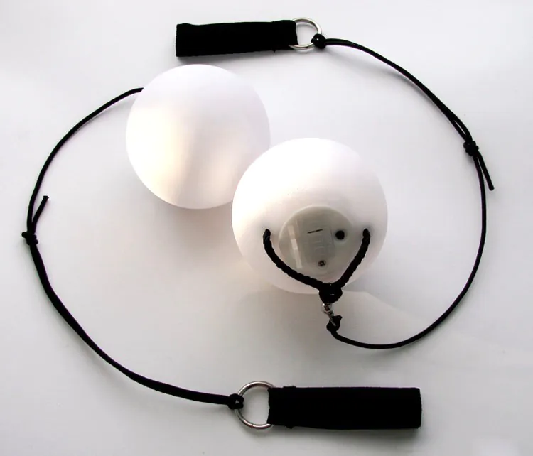 This is a new genre of contact poi which is popular in Europe in recent years. Stage ball with a diameter of 90 mm at the tip, 40 mm silicon knob at the end is attached. Expression is such that rolling the ball part to the body, lifting the silicon knob from the hand, throwing it up, isolating it. The rope has a length of 50 cm, but you can adjust it to your preferred length simply by cutting and tying it.