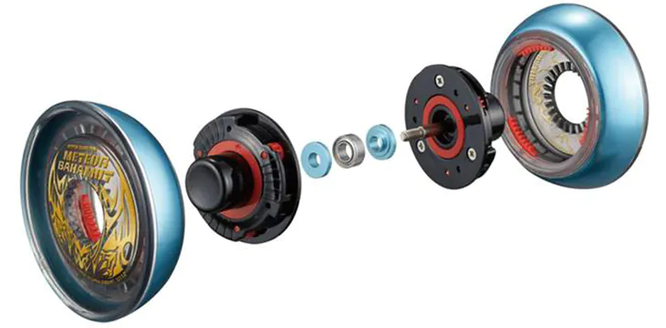 Large version of the legend bearings that were only in limited items “Meteoro Bearing “is included. Made by global manufacturer “Minebea Co., Ltd.” boasting the world’s largest share. Eight balls inside are polished enough to wear out and sleep power evolves. Luxury bearing with quiet sound.