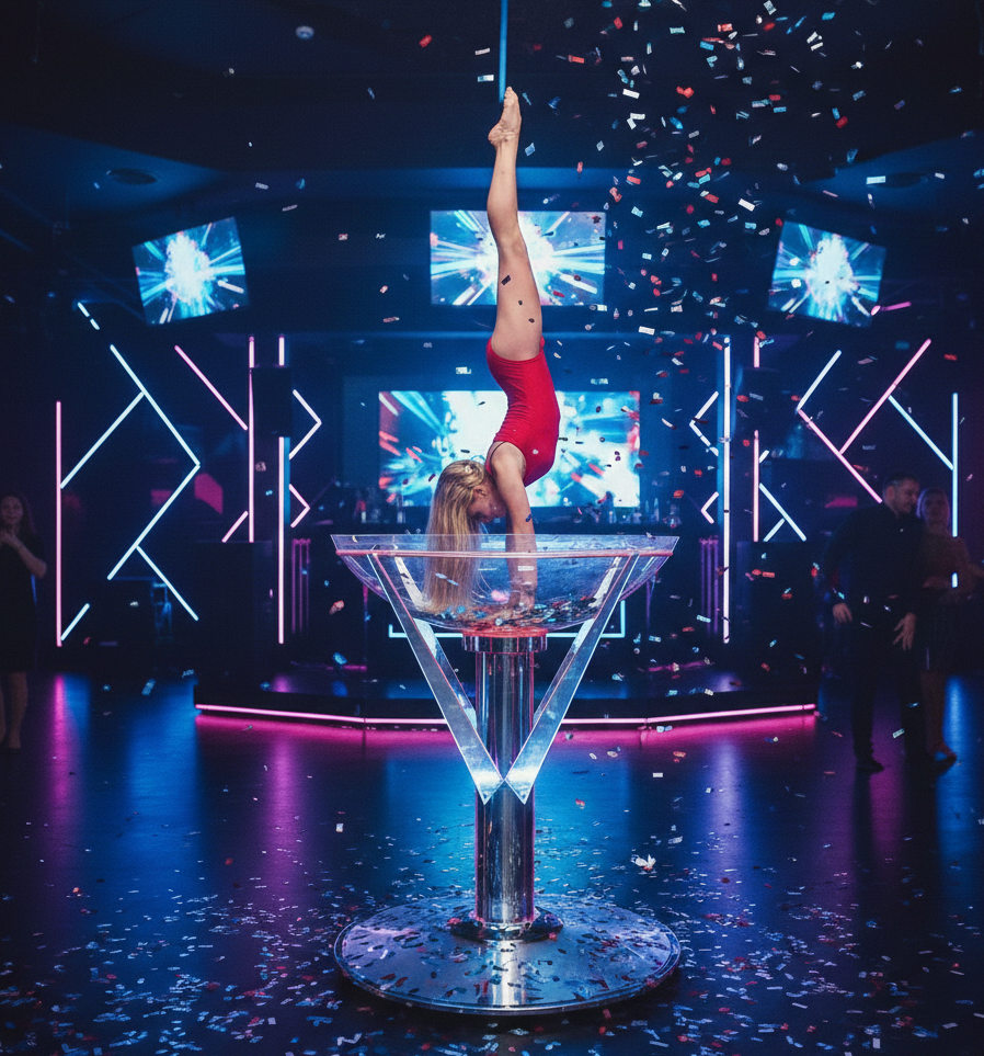 Giant martini glass custom made prop for shows, events, night clubs, venues, weddings, birthday parties, circus shows, dance shows